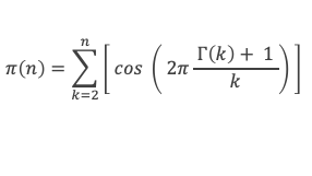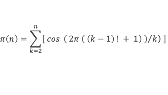 La fonction π(n) qui donne le nombre de nombre premier inférieur ou égal à n, peut donc s’écrire, pour n ≥ 5 :