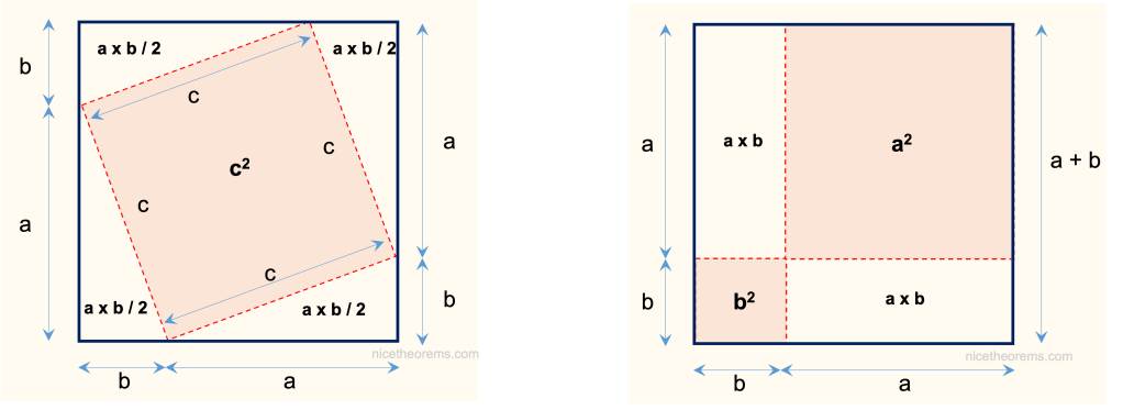 Dans un triangle rectangle, le carré de la longueur du côté opposé à l’angle droit (l’hypoténuse) est égal à la somme des carrés des longueurs des deux autres côtés.